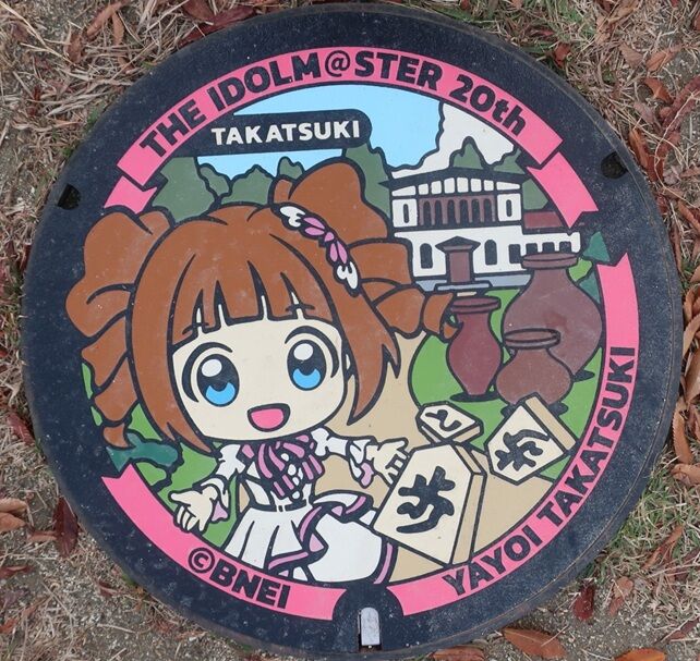 高槻市のマンホールの蓋 2025年12月09日 今回は高槻市の蓋を紹介します。「ふたマス!!!!!!」(アイドルマスターマンホールプロジェクト)の蓋で「アイドルマスター」の「たかつき観光大使 高槻やよい」と安満遺跡公園内の歴史拠点の建物、将棋の駒がデザインされています。「アイドルマスター」はバンダイナムコのゲームです。公園内の屋根付き広場から歴史拠点体育館へ行く遊歩道の脇に有りました。「将棋の渡辺くん」がデザインされています。JR東海道本線高槻駅西口を出た歩道に有りました。続きます。 タグ :##高槻市のマンホール##大阪府のマンホール##ふたマス##アイドルマスター##高槻やよい##将棋の渡辺くん
