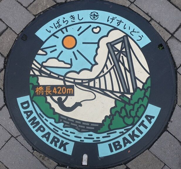 茨木市のマンホールの蓋 2025年12月02日 今回は茨木市の蓋を紹介します。「ダムパークいばきた」の吊橋がデザインされています。JR東海道本線茨木駅西口のトイレの前の歩道に有りました。続きます。 タグ :##茨木市のマンホール##大阪府のマンホール##ダムパークいばきた