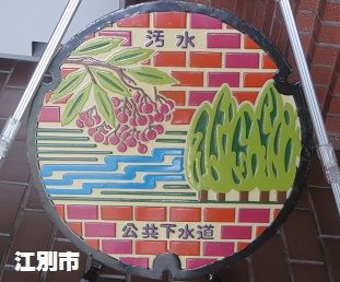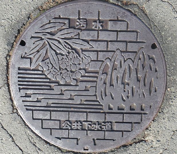 市制50周年記念事業で設置された蓋で、アルパカとハロウィンカボチャ、アスパラ、菊がデザインされています。JR千歳線恵み野駅西口の道路沿いの歩道に有りました。
