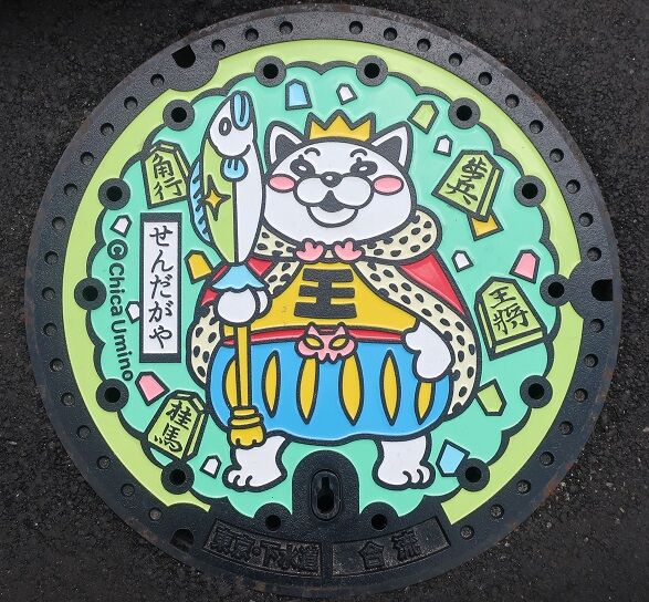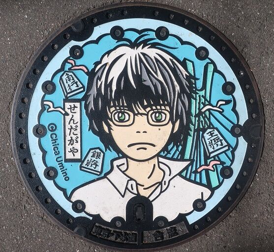 渋谷区と世田谷のマンホールの蓋 2016年08月13日 今回は渋谷区と世田谷区の蓋を紹介します。 先ず渋谷区の蓋です。 道玄坂をローマ字で記してあります。DOG・と区切ってありますが、よく見ると凹の部分は走っている人が、凸の部分は犬がデザインされています。将棋を題材にした漫画「3月のライオン」のキャラクターと将棋の駒がデザインされています。登場人物の片桐零。全ての蓋が千駄ヶ谷大通り商店街に有りました。近くに「将棋会館」が在ります。川本あかり。川本ひなた。川本モモ。二海堂晴信。王さまニャー。 次に世田谷区の蓋です。 北沢川緑道の蓋でメダカと蛍がデザインされています。Nさんに撮ってきて貰いました。代沢4-43辺りに有ります。 続きます。 「東京都」カテゴリの最新記事 タグ :##渋谷区のマンホール##世田谷区のマンホール##東京都のマンホール##蛍のマンホール##3月のライオン < 前の記事次の記事 > コメント コメントフォーム 名前 コメント 記事の評価 リセット リセット 顔 星 情報を記憶 コメントを投稿する