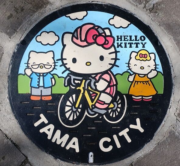 「多摩センター親善大使」の「キティちゃん」がデザインされています。市内に「サンリオピューロランド」が在ります。多摩中央公園の西南角に有りました。