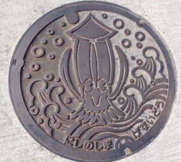 烏賊がデザインされています。別府港の近くの路上に有りました。