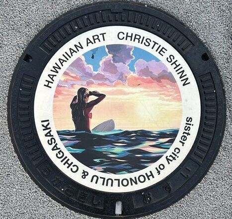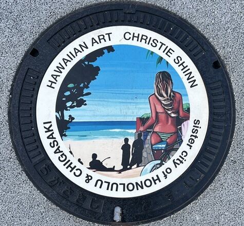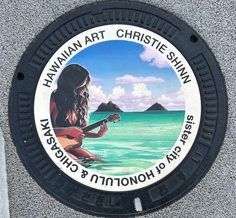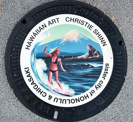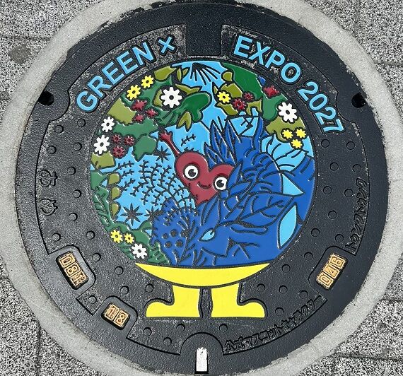 日本女子プロサッカーリーグ「WEリーグ」の「ノジマステラ神奈川相模原」の蓋でクラブマスコット「ももちゃん」とスタジアムがデザインされています。南区下溝1892に在る「岩田工業㈱」の近くの歩道に有りました。