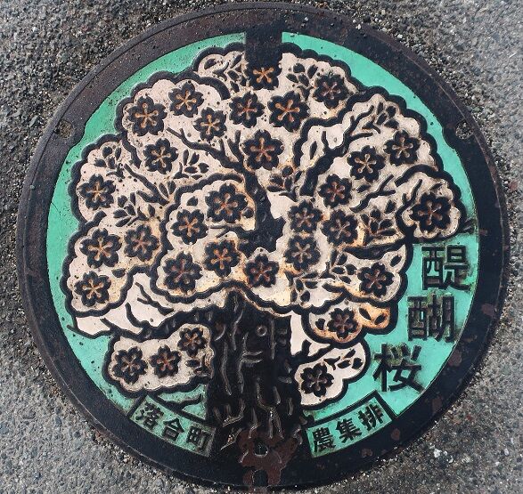 旧落合町の蓋で「醍醐桜」がデザインされています。栗原のR313の路上に有りました。