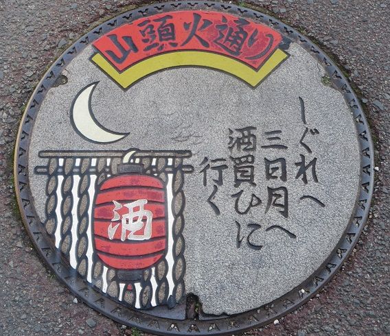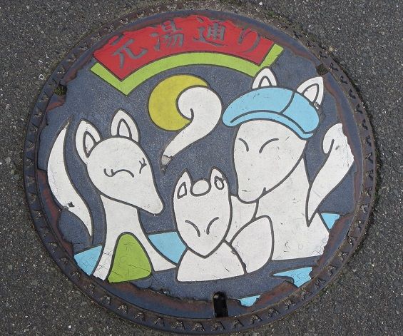 山口市の中心街から遠くない所に湯田温泉が在ります。湯田温泉は「白狐伝説」が伝わり、また、山頭火の縁の地として有名です。種田山頭火は湯田温泉に近い現在の防府市で生まれ、湯田温泉にも住んでたいたそうです。湯田温泉のそう広くない一角に「白狐伝説」と山頭火に因んだカラーマンホールの蓋が数多く有りました。温泉通りと中也通りにもカラー版が在ったようですが道路が改修された折に撤去されたようで見つけられませんでした。