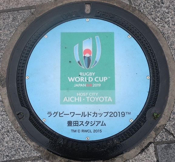 「ラグビーワールドカップ2019」の記念蓋です。豊田市駅駅前通りに有りました。