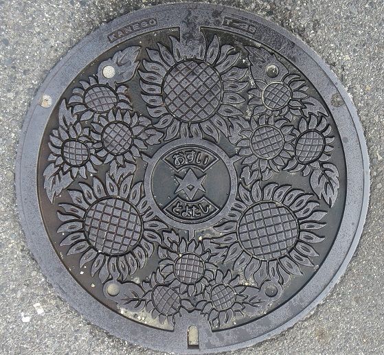市章と市の花向日葵がデザインされています。越戸こども園の近くに有りました。