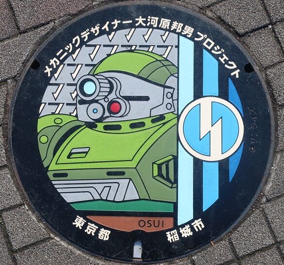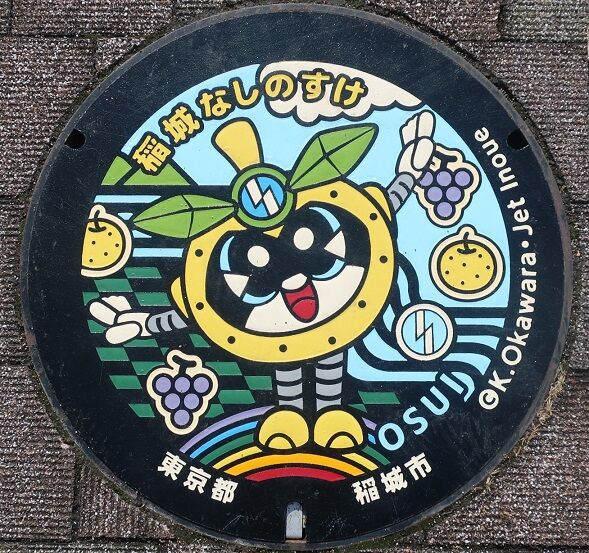 「メカニックデザイナー大河原邦男プロジェクト」の一環として、大河原邦男氏が手掛けたキャラクターと市のイメージキャラクター「稲城なしのすけ」をデザインした蓋が設置されました。