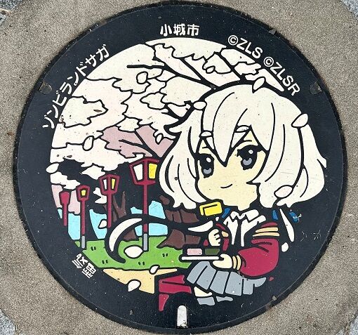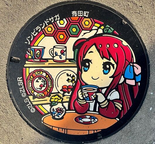 佐賀県のプロジェクトで「ゾンビランドサガ」(佐賀県が舞台のTVアニメ)の蓋が県内全20市町に設置されています。設置場所はこちら。