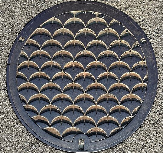 小城市のマンホールの蓋