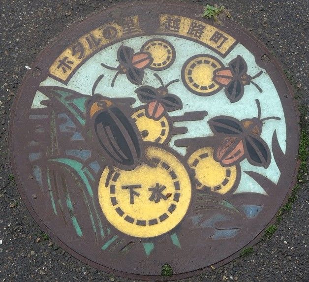 旧越路町の蓋で蛍がデザインされています。来迎寺4011に有りました。
