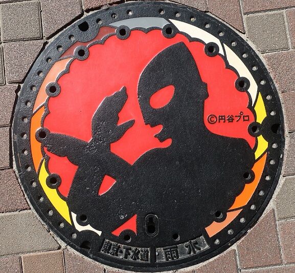 世田谷区のマンホールの蓋 2020年04月14日 今回は世田谷区の蓋を紹介します。「ウルトラマンシリーズ」を制作している「円谷プロダクション」の創業の地が小田急線祖師ヶ谷大蔵駅の近くで在ることから、「ウルトラマン」と登場する怪獣がデザインされています。全ての蓋が小田急線祖師ヶ谷大蔵駅北口のガード下とその南の信号交差点に有りました。「ウルトラセブン」「カネゴン」「バルタン星人」「アントラー」続きます。 タグ :##世田谷区のマンホール##とうきょう##ウルトラマン