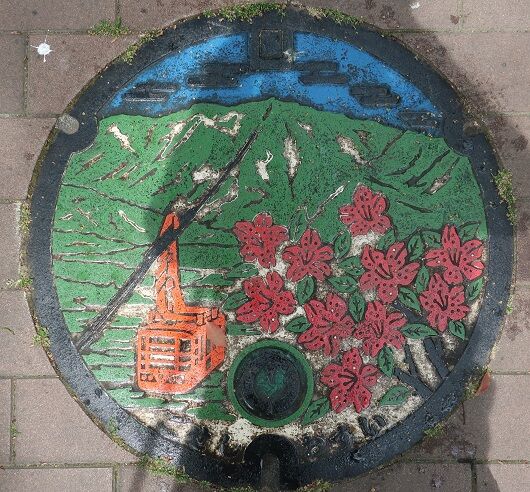 五條市と御所市のマンホールの蓋 2021年04月04日 今回は五條市と御所(ごせ)市の蓋を紹介します。先ず五條市の蓋です。市章と市の花桔梗がデザインされています。奈良県流域下水道センターに展示設置してありました。次に御所市の蓋です。市章と市の花躑躅、葛城山、葛城山ロープウェイがデザインされています。奈良県流域下水道センターに展示設置してありました。続きます。 タグ :##五條市のマンホール##御所市のマンホール##奈良県のマンホール