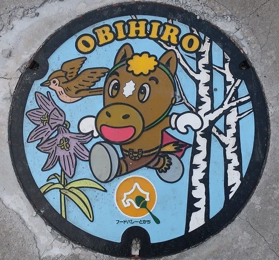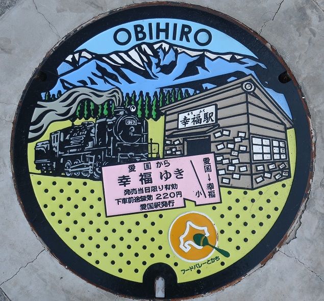 幕別町は人口28千人の農業が主産業の町です。2006年に忠類村と合併しました。ナガイモの生産が盛んで新品種「和稔じょ幕別1号」は注目されています。パークゴルフ発祥の地です。以前芽室町の蓋の紹介で芽室町がパークゴルフ発祥の地と書きましたが間違いで、芽室町はゲートボール発祥の地でした。パークゴルフはゲートボール大の球を芝生の上で打って規定打数で穴に入れることを競うゴルフに似た球技です。毎年8月にここで国際パークゴルフ大会が開催されています。東京ドーム5個分の広さの「ガーデンパーク"日新の丘"正直村」があり、中はカートで見て回るそうです。忠類村では1969年に日本で最初にナウマン象の化石が発掘されました。陸上短距離の福島千里、スピードスケートの高木菜耶・美帆姉妹は幕別町の出身です。