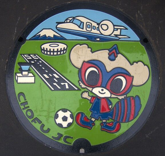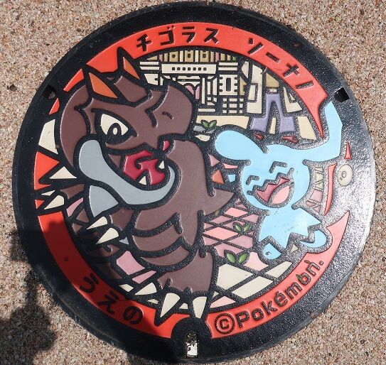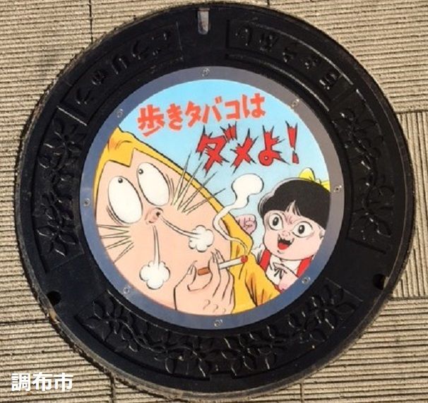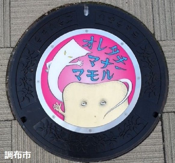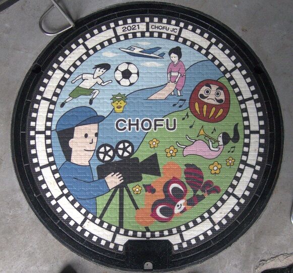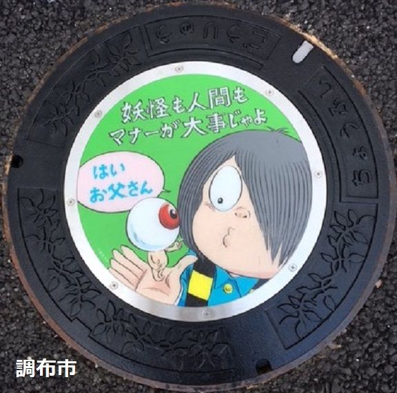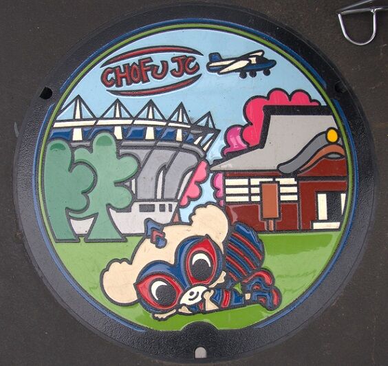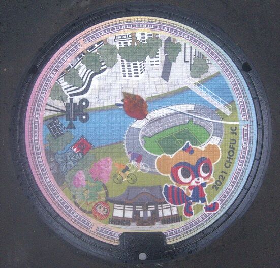 台東区と調布市のマンホールの蓋 2016年08月20日 今回は台東区と調布市の蓋を紹介します。先ず台東区の蓋です。台東区が舞台のテレビアニメ「さらざんまい」のキャラクターがデザインされています。松が谷2-25-8に在る「ヤマヤ商店」の前の歩道に有りました。ポケふたです。TVアニメ「ブルーピリオド」の主人公・矢口八虎がデザインされています。次の蓋と共に東京藝術大学美術学部絵画棟の裏門の前に有りました。次に調布市の蓋です。桜通りの桜と映画のフィルム、「FC東京」のマスコットキャラクター「東京ドロンパ」、市の地図上の形がデザインされています。小島町1に在る「オーケー調布店」の南側の歩道に有りました。 市章と市の花百日紅(サルスベリ)がデザインされています。つつじケ丘駅前交番の近くの歩道に有りました。 調布市に住んだ武者小路実篤が描いた南瓜がデザインされています。現在は市内に設置されておらず「武者小路実篤記念館」の中庭に展示されています。(蕎麦屋・増田屋の前に有るとの情報が有ります。) 次の5枚と共に京王線調布駅北口近くにマナー啓蒙の為に2015年に設置されました。調布市は「ゲゲゲの鬼太郎」の作者の水木しげるが住んだ地です。「ワールドカップラグビー2019」の記念蓋です。市内に在る東京スタジアムで8試合が行われます。京王線飛田給駅の北口ロータリーに有りました。Jリーグ「FC東京」のメインキャラクター「東京ドロンパ」と市内の要所がデザインされています。全ての蓋が「メガロス調布」の駐輪場に有りました。「新選組局長 近藤勇 生誕190周年」記念の蓋です。京王線西調布駅北口のロータリーに有りました。続きます。 タグ :##台東区のマンホール##調布市のマンホール##東京都のマンホール##ゲゲゲの鬼太郎のマンホール##ゲゲゲの鬼太郎##東京ドロンパ##近藤勇##新選組のマンホール