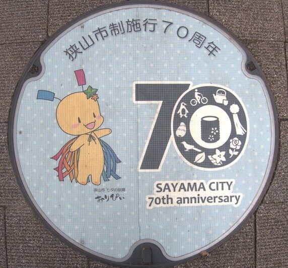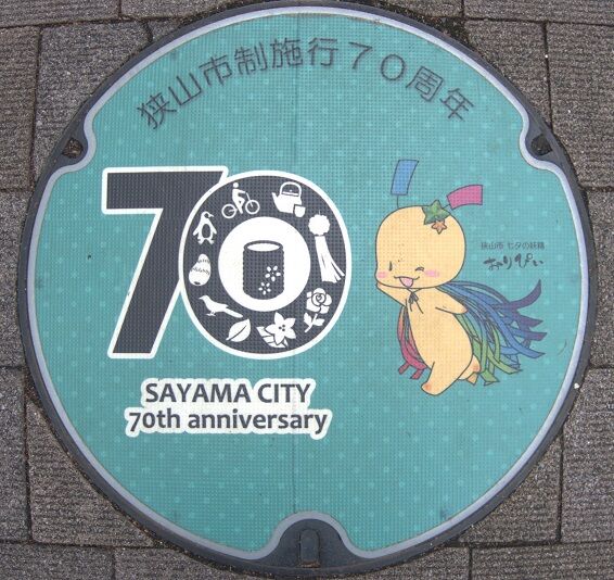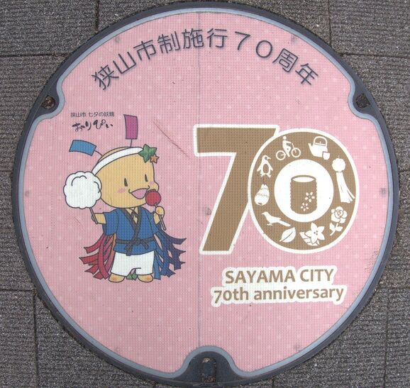 狭山市のマンホールの蓋 2024年12月19日 今回は埼玉県狭山市の蓋を紹介します。市制施行70周年記念の蓋で70周年のロゴと市のイメージキャラクター「七夕の妖精おりぴぃ」がデザインされています。最後の蓋以外は西武新宿線狭山市駅西口ロータリーに有りました。狭山市駅東口ロータリーに有りました。続きます。 タグ :##狭山市のマンホール##埼玉県のマンホール