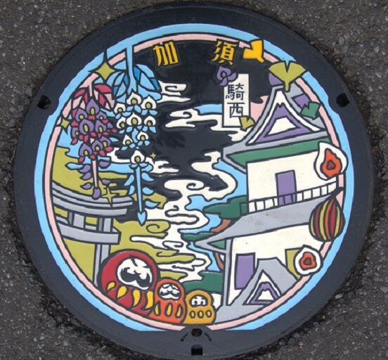 加須市のマンホールの蓋 2024年03月30日 今回は埼玉県加須(かぞ)市の蓋を紹介します。加須地域の蓋で長さ100m、重さ330kgのジャンボ鯉幟がデザインされています。加須市商工会の前の歩道に有りました。騎西地域の蓋で「騎西城」と旧騎西町の花藤、旧町の木銀杏の葉、だるま市のだるまなどがデザインされています。加須市立騎西図書館の駐車場横の歩道に有りました。大利根地域の蓋で旧大利根町の花菊と稲、苺、ホテイアオイがデザインされています。「香林寺」と香林寺池風の子公園の間の歩道に有りました。続きます。 タグ :##加須市のマンホール##埼玉県のマンホール##騎西城
