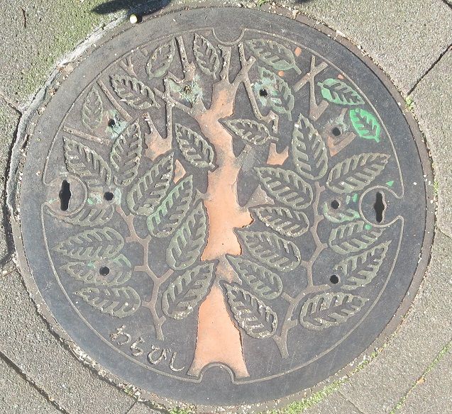 嵐山町と和光市のマンホールの蓋 2017年07月19日 今回は嵐山町と和光市の蓋を紹介します。 先ず嵐山町の蓋です。 オオムラサキと蛍、バッタが飛び交うなど自然環境の良さをアピールしたデザインです。市野川水循環センターの入口の壁に小川町と滑川町の蓋と共に埋め込んで有りました。 次に和光市の蓋です。 市章と市の花皐月、市の木銀杏の葉がデザインされています。R109の和光市駅入口信号交差点に有りました。 続きます。 タグ :##嵐山町のマンホール##和光市のマンホール##埼玉県のマンホール##蝶のマンホール