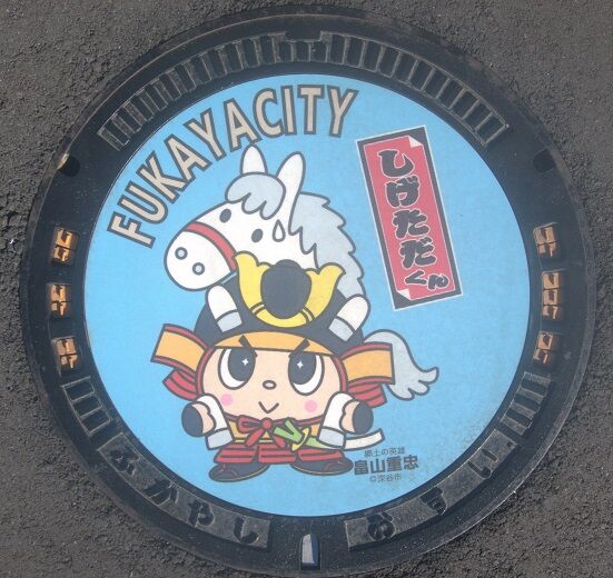 深谷市のマンホールの蓋 2023年03月11日 今回は埼玉県深谷市の蓋を紹介します。当市出身の渋沢栄一と煉瓦建てのJR高崎線深谷駅舎がデザインされています。深谷駅北口ロータリーの入口の歩道に有りました。市のマスコットキャラクター「しげただくん」がデザインされています。「しげただくん」は鎌倉幕府の御家人・畠山重忠で市の英雄だそうです。市役所通りの仲町3-16-15辺りの歩道に有りました。続きます。 タグ :##深谷市のマンホール##埼玉県のマンホール##渋沢栄一##畠山重忠