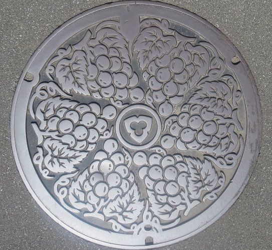 甲州市のマンホールの蓋 2018年07月19日 今回は甲州市の蓋を紹介します。 旧塩山市の蓋で町章と町の花萩、大菩薩峠がデザインされています。JR中央本線塩山駅南口に有りました。 旧勝沼町の蓋で町章と町の木葡萄の房がデザインされています。言わずと知れた葡萄の町です。 旧大和村の蓋で村章と村の花山桜、「武田菱」がデザインされています。大和村田野が武田勝頼の最期の地だそうです。 続きます。 タグ :##塩山市のマンホール##勝沼町のマンホール##大和村のマンホール##甲州市のマンホール##山梨県のマンホール##葡萄のマンホール