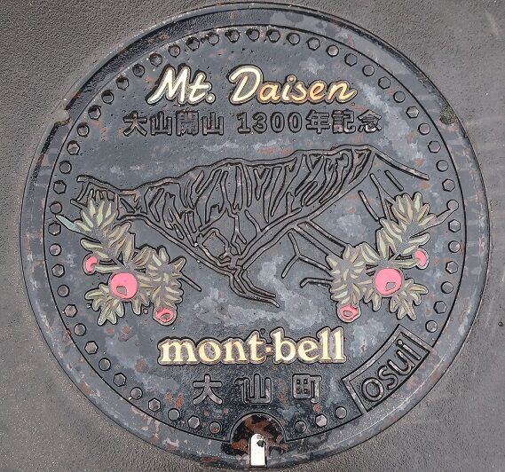 旧大山町の蓋で町章と町の花撫子がデザインされています。富山地方鉄道不二越上滝線上滝駅前の路上に有りました。
