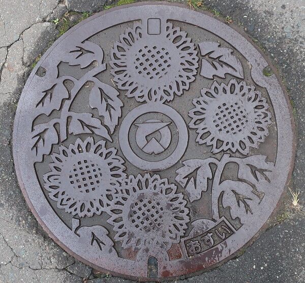 旧東和町の蓋で町のマスコット「あやめちゃん」と町の花アヤメがデザインされています。田瀬地区に「あやめ苑」が在ります。東和町安俵6区142-2の路上に有りました。