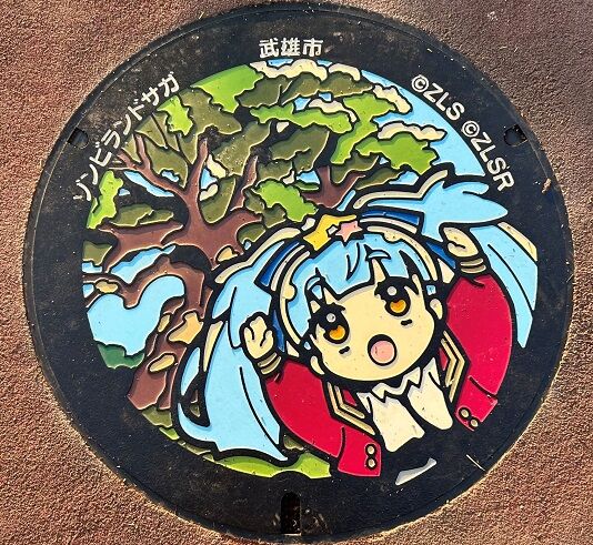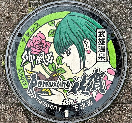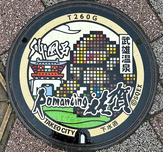 「武雄温泉楼門」がデザインされています。武雄町昭和に在る「ホテルセントラル」の傍の路上に有りました。