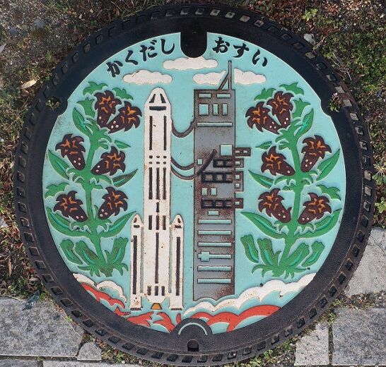 台山公園に展示されているH-Ⅱロケットとスペースタワー、市の花リンドウがデザインされています。角田市には「宇宙航空研究開発機構(JAXA)角田宇宙センター」が在ります。コスモハウスも在り実物大の人工衛星の模型や実物のロケットエンジンが展示されています。角田南62-12の道路脇に有りました。