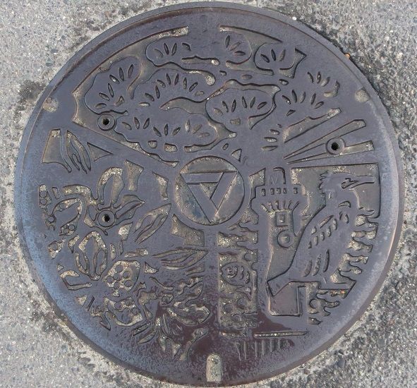 弥富市と愛知県のマンホールの蓋 2019年11月26日 今回は弥冨市と愛知県の蓋を紹介します。先ず弥富市の蓋です。市の木桜の花と市のメインキャラクターの金魚の「きんちゃん」、サブキャラクターの白文鳥がデザインされています。金魚の町として有名です。平島中4のセブンイレブンの前の歩道に有りました。旧十四山村の蓋で村章を市章に替えて村の花菊と村の木槇がデザインされています。市役所十四山支所の近くに有りました。次に愛知県の蓋です。県の花カキツバタと県の鳥コノハズクがデザインされています。名鉄尾西線町方駅の一宮方面入口の近くに有りました。続きます。 タグ :##弥富市のマンホールの蓋##十四山村のマンホール##愛知県のマンホール