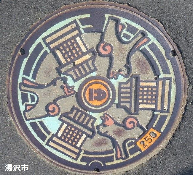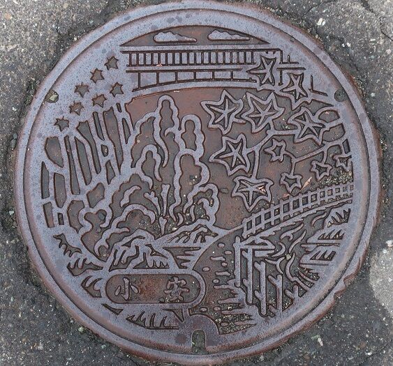旧雄勝町の蓋で東洋一と言われた院内銀山がデザインされています。現在は湯沢市名が入っています。