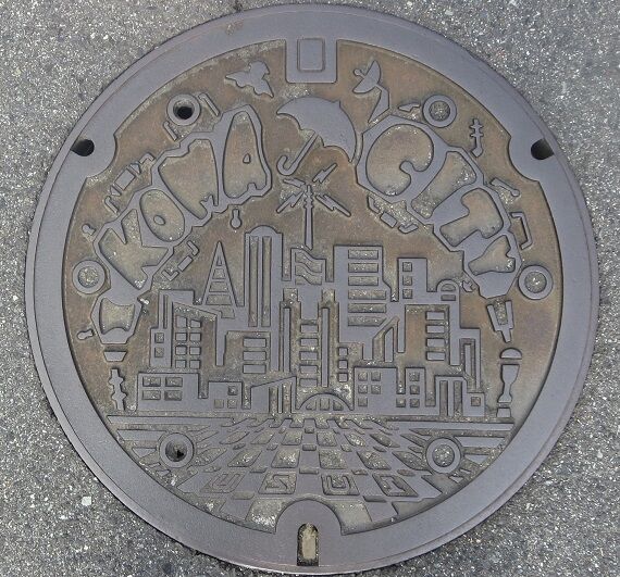 生駒市のマンホールの蓋 2021年03月21日 今回は生駒市の蓋を紹介します。未来の都市のイメージだそうです。奈良県流域下水センターに展示設置してありました。生駒台南127の十字路に有りました。市の木イチイガシとロボットの化学者がデザインされています。けいはんな線白庭台駅のロータリーに有りました。市のイメージキャラクター「たけまるくん」と生駒山の電波塔、生駒山上遊園地の飛行塔、2台のケーブルカー、伝統工芸品の「高山茶筌」が盛沢山にデザインされています。近鉄奈良線生駒駅南口バス停の傍に有りました。続きます。 タグ :##生駒市のマンホール##奈良県のマンホール