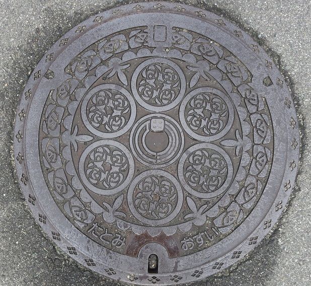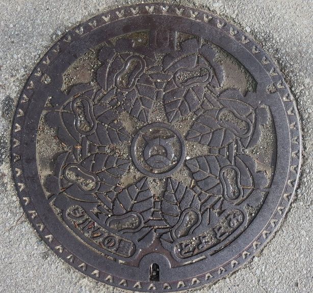 中央市のマンホールの蓋 2018年07月28日 今回は中央市の蓋を紹介します。市章と市の花レンゲ草、市の木桜の花、市の鳥白鷺、合併した日付、周囲に「武田菱」がデザインされています。旧玉穂町の蓋で町の花すみれと町の木梅の花、周囲に「武田菱」がデザインされています。旧田富町の蓋で町章と町の花薔薇、周囲に「武田菱」がデザインされています。旧豊富村の蓋で村章と桑の葉、繭、繭の中に蚕がデザインされています。昭和の後半は繭の生産が日本一だったそうです。続きます。 タグ :##玉穂町のマンホール##田富町のマンホール##豊富村のマンホール##中央市のマンホール##山梨県のマンホール