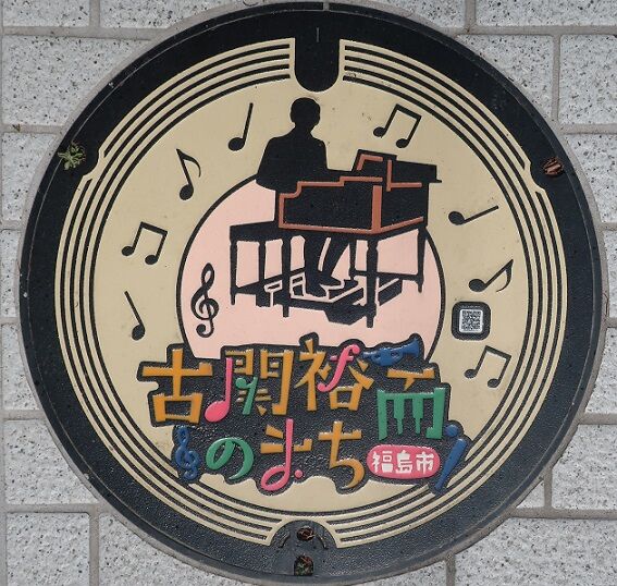 市の出身の古関裕而の功績を称えた蓋です。「古関裕而記念館」の前の歩道に有りました。