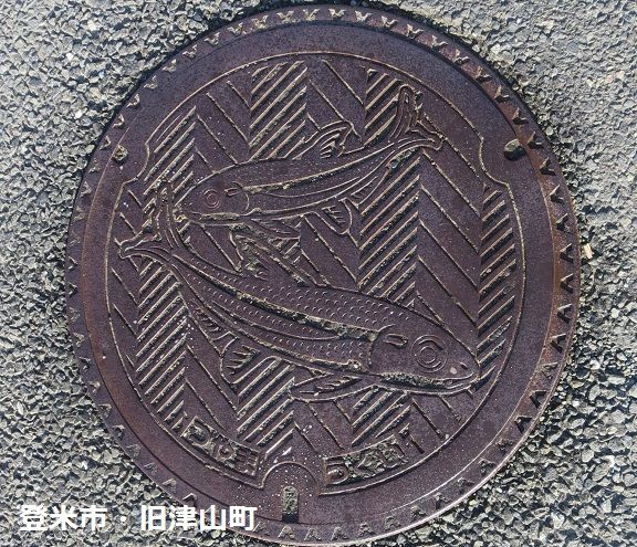 旧津久井町の蓋で水源文化都市としてのシンボルマークの波型がデザインされています。横浜市の水源地で波型は水と山を表現しているそうです。津久井総合事務所近くに有りました。