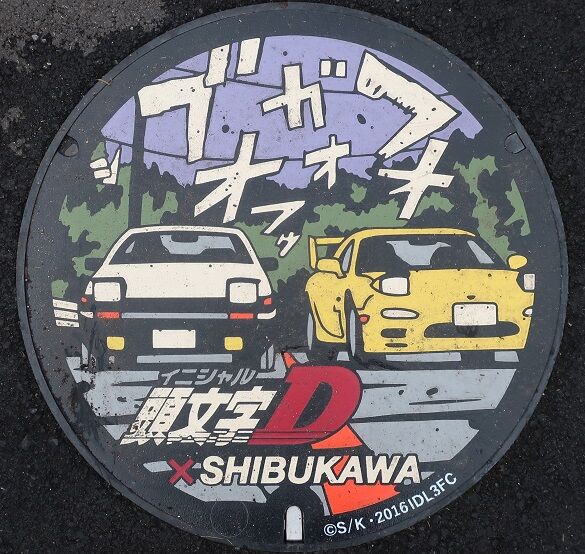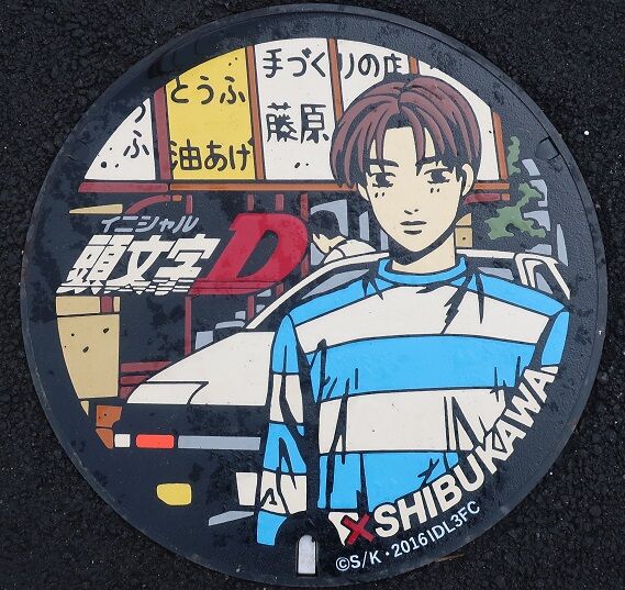 市の「アニメツーリズム推進事業」の一つとして、榛名山の峠道を舞台にドリフトする若者達を描いた漫画「頭文字D(イニシャル・ディー)」とコラボした蓋が設置されました。