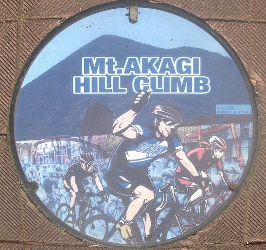 「まえばし赤城山ヒルクライム」の様子がデザインされています。「朝日生命保険前橋営業所」の前の歩道に有りました。