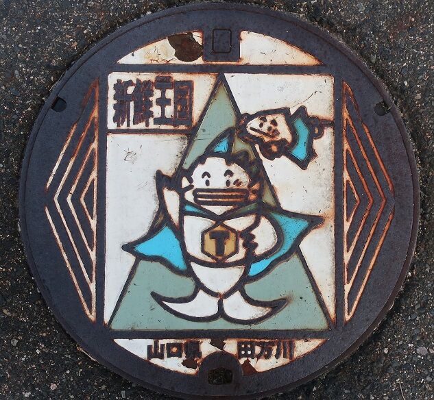 萩市のマンホールの蓋 2023年08月22日 今回は萩市の蓋を紹介します。旧田万川町の蓋で町のシンボルマーク「たま坊」と桃の「ふるふる」がデザインされています。「山口県漁協江崎支店」の東側の路上に有りました。旧須佐町の蓋で須佐湾の「須佐ホルンフェルス(変成岩)」がデザインされています。萩市須佐総合事務所の近くの路上に有りました。山口県の蓋の紹介は今回で終りです。次回から New Design の蓋を紹介します。続きます。 タグ :##萩市のマンホール##田万川町のマンホール##須佐町のマンホール##山口県のマンホール