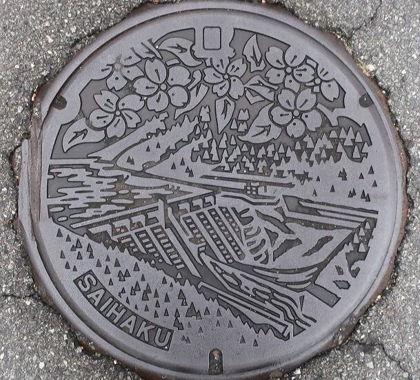 南部町のマンホールの蓋 2022年03月29日 今回は南部町の蓋を紹介します。ポケふたです。旧西伯町の蓋で町の花桜と「賀祥ダム」がデザインされています。法勝寺534に有りました。旧会見町の蓋で特産品の富有柿と埴輪がデザインされています。町内には古墳が多く在るそうです。福里59の歩道に有りました。続きます。 タグ :##西伯町のマンホール##会見町のマンホール##南部町のマンホール##南部町のポケふた##鳥取県のマンホール