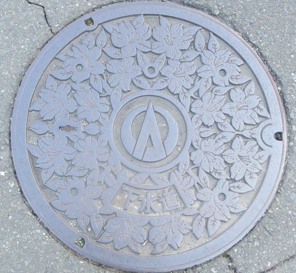 旧清水市の蓋で市の花霧島躑躅がデザインされています。市章が静岡市の市章に替っています。JR東海道本線清水駅江尻口ロータリーに有りました。