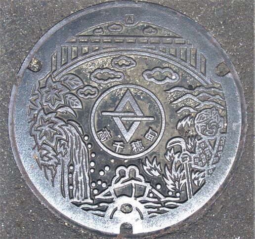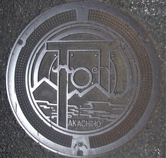 高千穂町のマンホールの蓋 2025年04月15日 今回は高千穂町の蓋を紹介します。町章と高千穂大橋、高千穂峡と真名井の滝、大鎌を持った農夫がデザインされています。「ソレスト高千穂ホテル」入口の反対側の坂を上った所に有りました。Tの文字をあしらった鳥居と高千穂の山々に昇る朝日がデザインされています。ホテルの前の路上に有りました。ポケふたです。続きます。 タグ :##高千穂町のマンホール##宮崎県のマンホール##高千穂町のポケふた