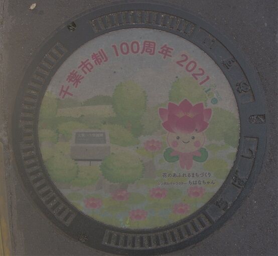 市の花筑紫石楠花がデザインされています。下大渡野町524辺りの路上に有りました。